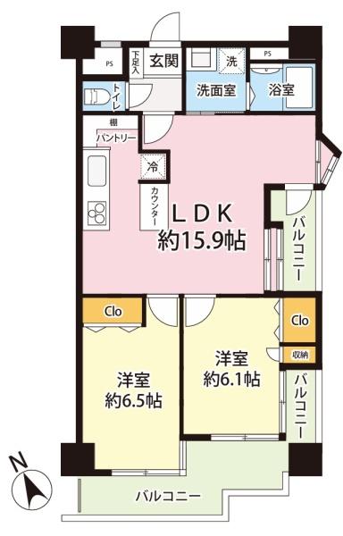専有面積 | 60.15u | 間取り | 2LDK (-) | ||
