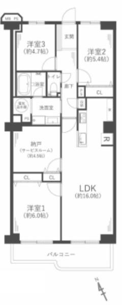 | 間取り | 3SLDK (-) | ||||||