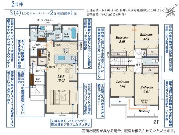 土地面積 | 142.62m² (43.14坪) | 建物面積 | 96.95u |