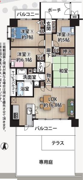 南向き角住戸 専用庭付き